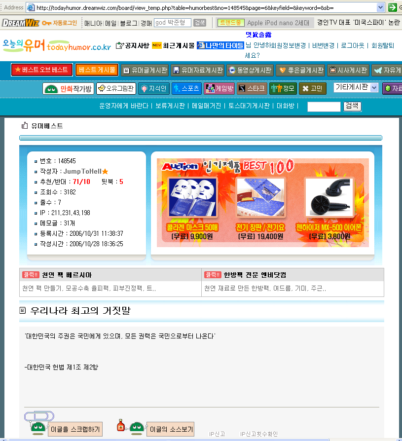 | 325 | **목욕탕에서 일어났던 실제 사건** | Dreamy | 2006.11.16 | 8604 | 148 |