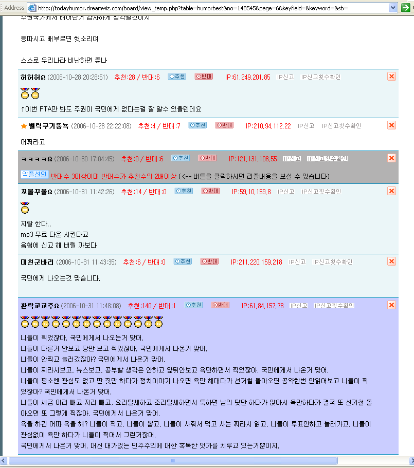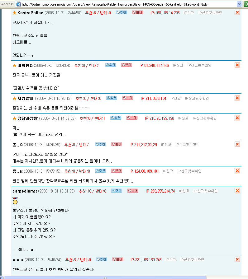| 314 | 우리 나라. 대한민국. | Dreamy | 2006.10.18 | 6986 | 143 |