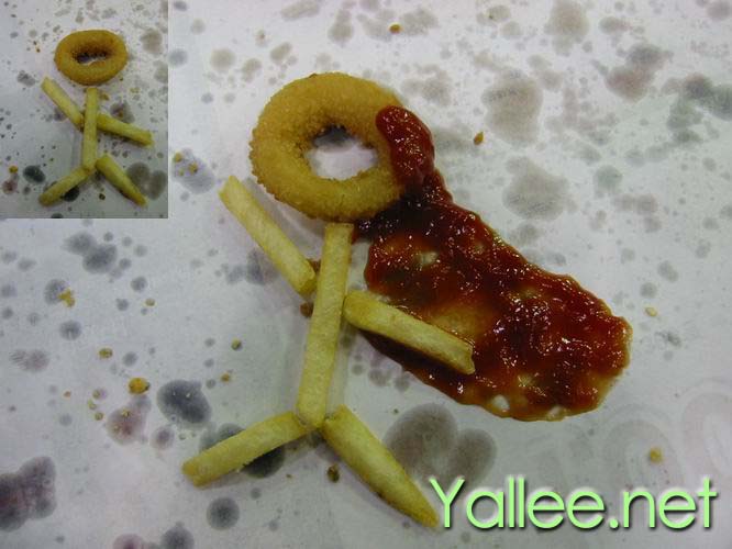 쫄라맨을 기름에 튀긴후 얼굴을 뭉개고 머리를 둔탁한 둔기로 친 현장이군요...