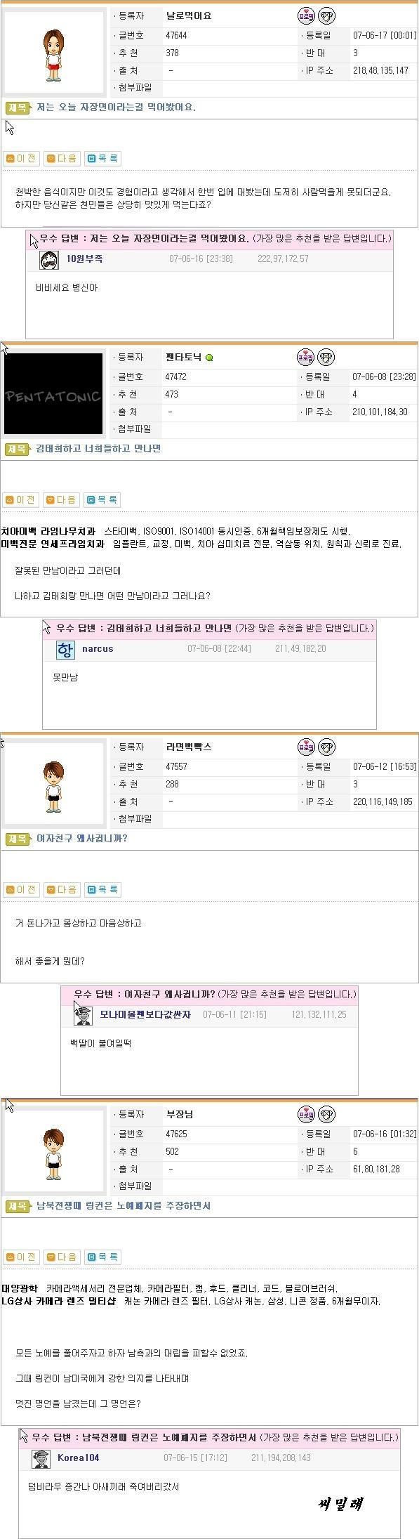 | 424 | 똑바로 살아라 : 동아일보 드디어 정신나갔다! (다음아고라펌) | Dreamy | 2007.07.18 | 7240 | 134 |
