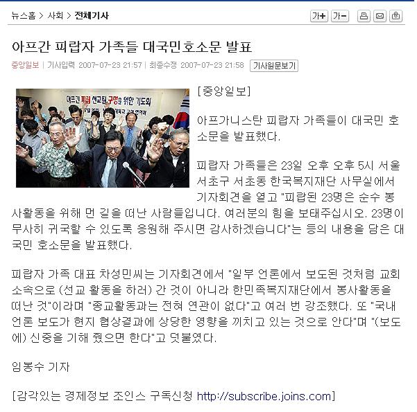 ┗ 2006년 8월, 강병태 논설위원 아프간 납치사건 예언 논설
