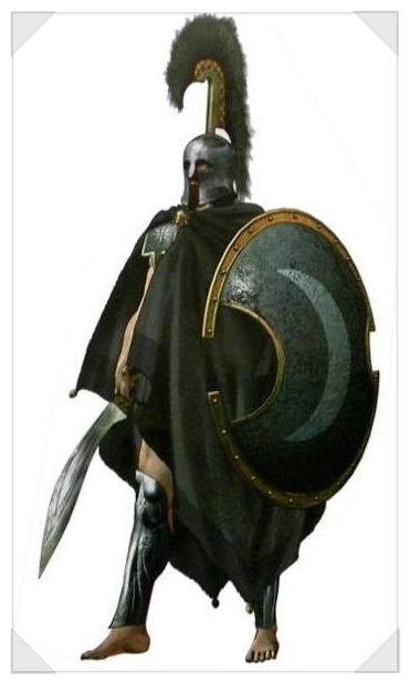 스파르타 정예 병력은 청동투구,흉갑,정강이 받이로 몸을 보호했습니다.