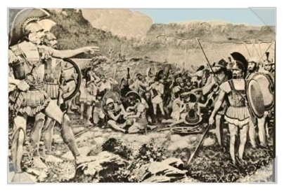 "지나가는 길손이여 가서 스파르타인들에게 말하라, 우리는 조국의 명을 받들어 여기에 잠들어 있노라고..."