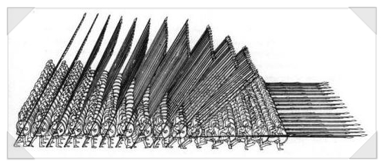 또한 방진 팔랑스라고 하여 방패를 앞에 세우고 투창을 사이사이로 내민 고슴도치와 같은 형태를 취합니다.