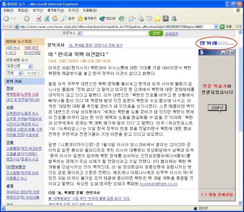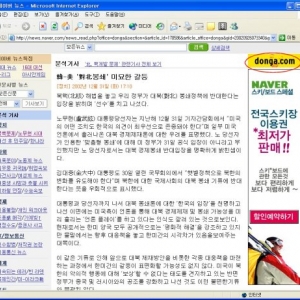 그런데 동아일보는 '미묘한 갈등'이라는 말을 써서 마치 미국은 더욱 강경한 자세로 몰아붙여 남북한의 긴장이 더욱 고조될것처럼 써놓았습니다. 헤드라인만 읽은 사람이라면 당연히 속을수 밖에요. 실상 내용은 '갈등'이 아니라 '미묘한'에 중심이 맞춰져 있지요. 게다가 한겨레에 실린 내용대로 뉴욕타임즈나 워싱턴포스트는 미국의 강경정책을 비판하고 나선데다, 이날 오후 동남아 어디하고 파월이 인터뷰한 내용에는 평화적으로 해결한 복선을 충분히 깔아두고 잇었습니다.